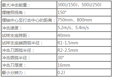 JB-W300A/W500A微機控制擺錘式沖擊試驗機技術參數: