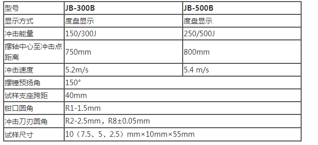 JB-300B/500B擺錘式半自動(dòng)沖擊試驗(yàn)機(jī)技術(shù)參數(shù):