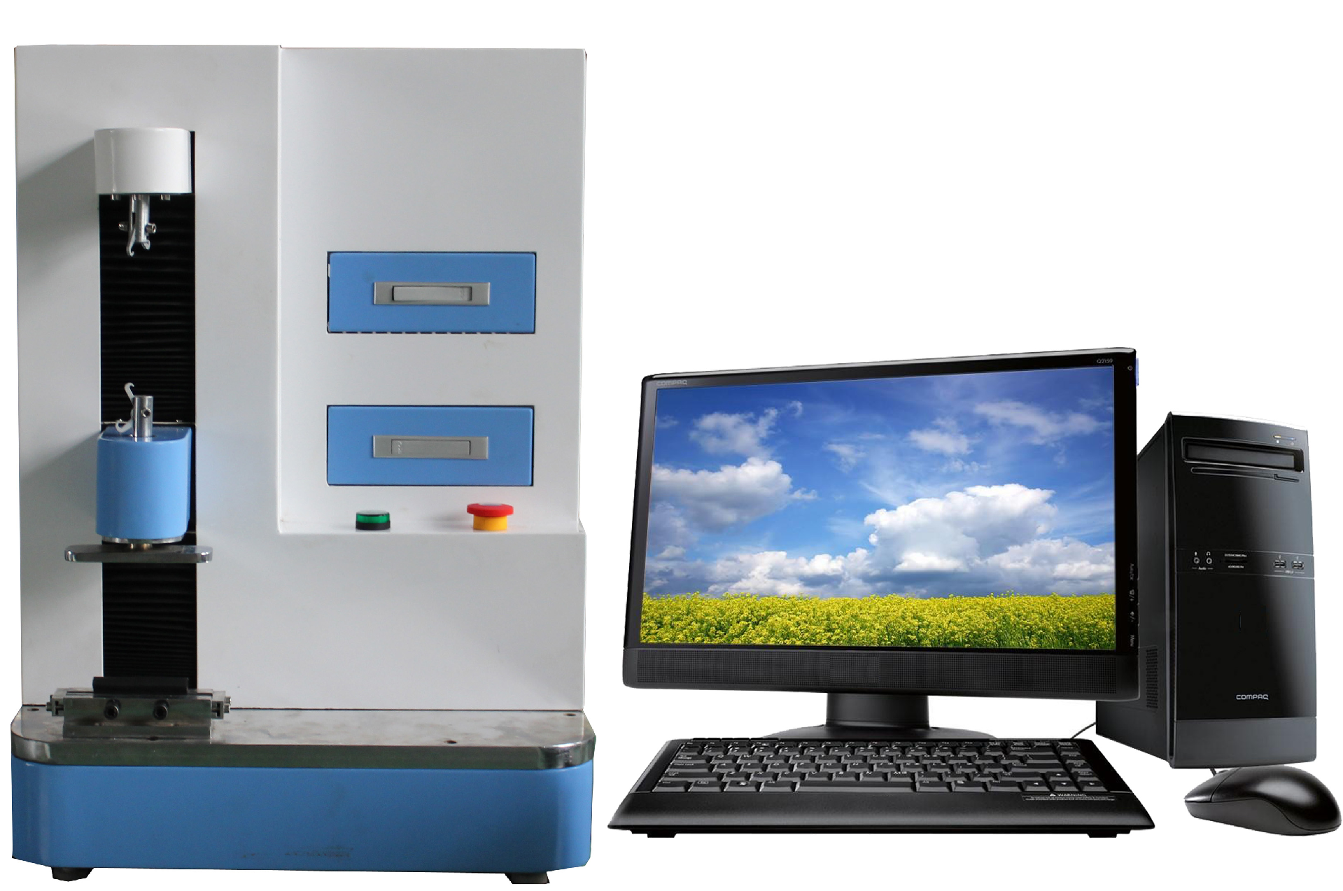 微機(jī)控制彈簧拉壓試驗(yàn)機(jī)依據(jù)國家彈簧拉壓試驗(yàn)機(jī)標(biāo)準(zhǔn)規(guī)定的技術(shù)要求制成,專業(yè)設(shè)計(jì)的自動(dòng)控制和數(shù)據(jù)采集系統(tǒng),實(shí)現(xiàn)了數(shù)據(jù)采集和控制過程的全數(shù)字化調(diào)整。能對(duì)拉簧、壓簧、碟簧、塔簧、板簧、卡簧、、片彈簧、復(fù)合彈簧、氣彈簧、模具彈簧、異形彈簧等精密彈簧的拉力、壓力、位移、剛度等強(qiáng)度試驗(yàn)和分析。試驗(yàn)機(jī)主機(jī)與輔具的設(shè)計(jì)借鑒了日本島津的先進(jìn)技術(shù),所有重要零部件均采用日本進(jìn)口大型加工中心加工,保證試驗(yàn)機(jī)的精度,所有精密杠均為磨削加工。采用該結(jié)構(gòu)保證機(jī)架有足夠的精度和剛度,同時(shí)實(shí)現(xiàn)高效、平穩(wěn)傳動(dòng)。保證了主機(jī)的耐久性。外形美觀,操作方便,性能穩(wěn)定可靠。計(jì)算機(jī)系統(tǒng)通過控制器,經(jīng)調(diào)速系統(tǒng)控制精密電機(jī)轉(zhuǎn)動(dòng),經(jīng)減速系統(tǒng)減速后通過精密絲杠副帶動(dòng)壓盤上升、下降,完成試樣的壓縮等力學(xué)性能試驗(yàn)。